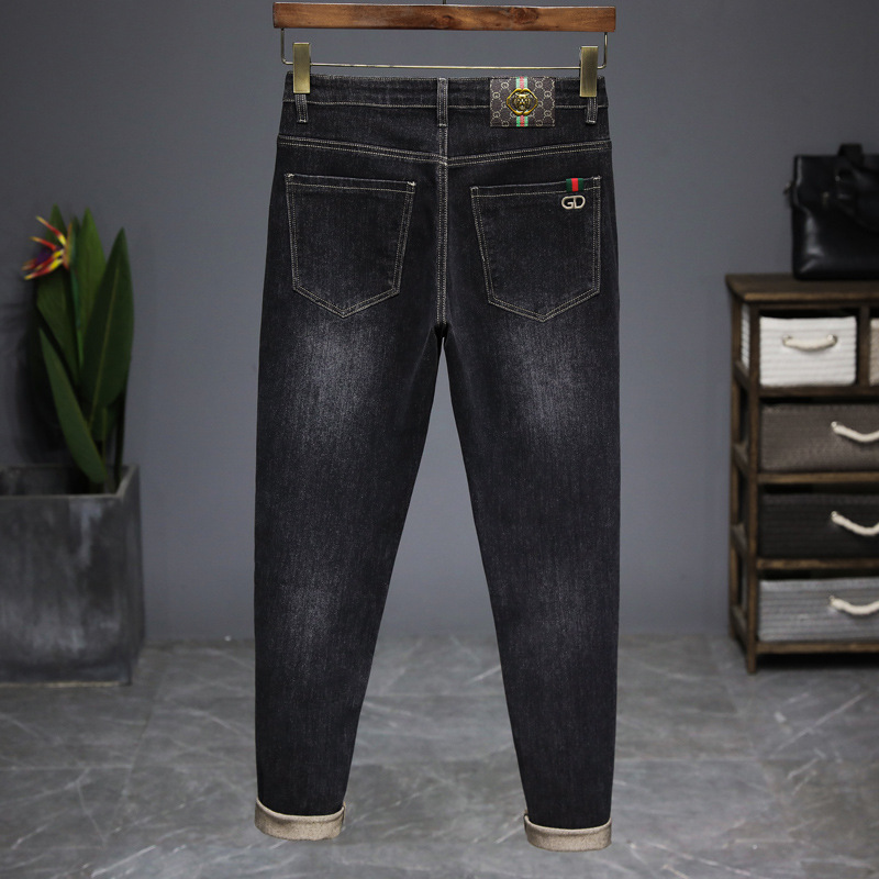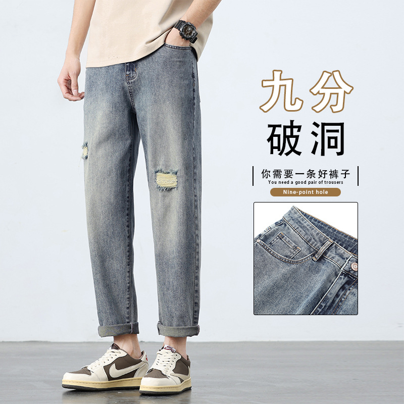 カジュアルジーンズメンズ新しいトレンディなストレートパンツメンズ英国スタイル春と夏ユニバーサルミッドウエストマイクロ弾性ハンドラブ