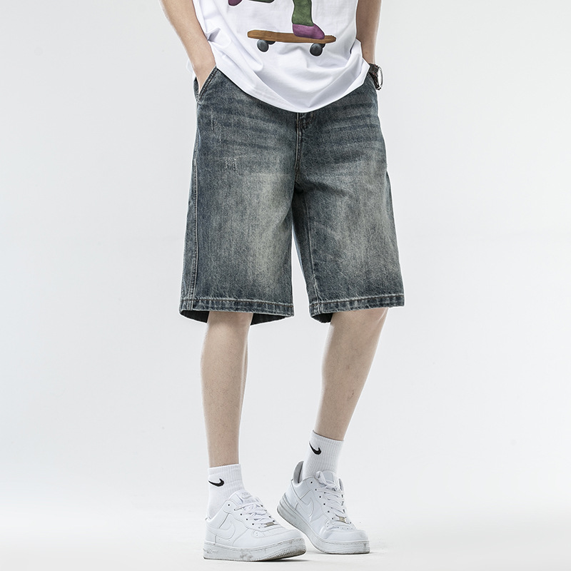 5点デニムの新しい夏の高品質コットンドレープルーズカジュアルショーツメンズトレンディな大きいサイズミッドパンツ
