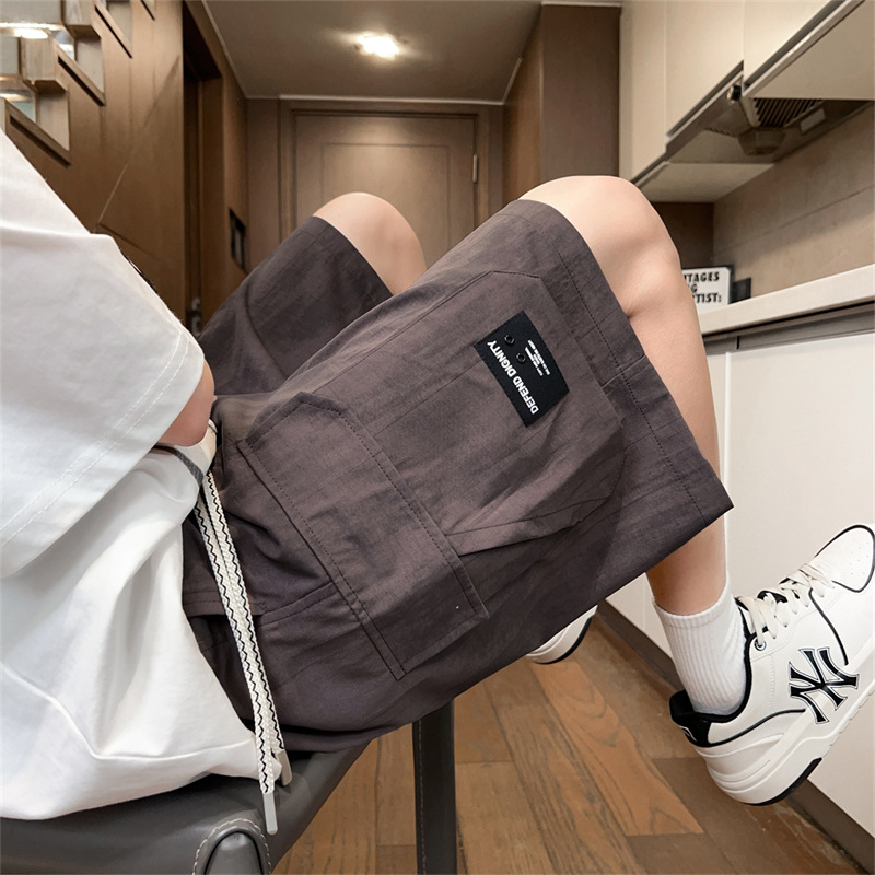 大きいサイズのメンズ夏の新しい日本のトレンディなブランドマルチポケット作業着5点パンツ薄手のルーズトレンディなミッドパンツ
