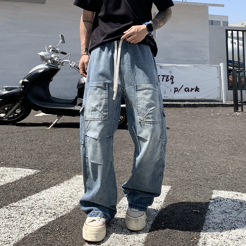 メンズパンツメンズパンツ2024アメリカンレトロホームジーンズメンズルーズトレンディブランドラージレッグパンツ