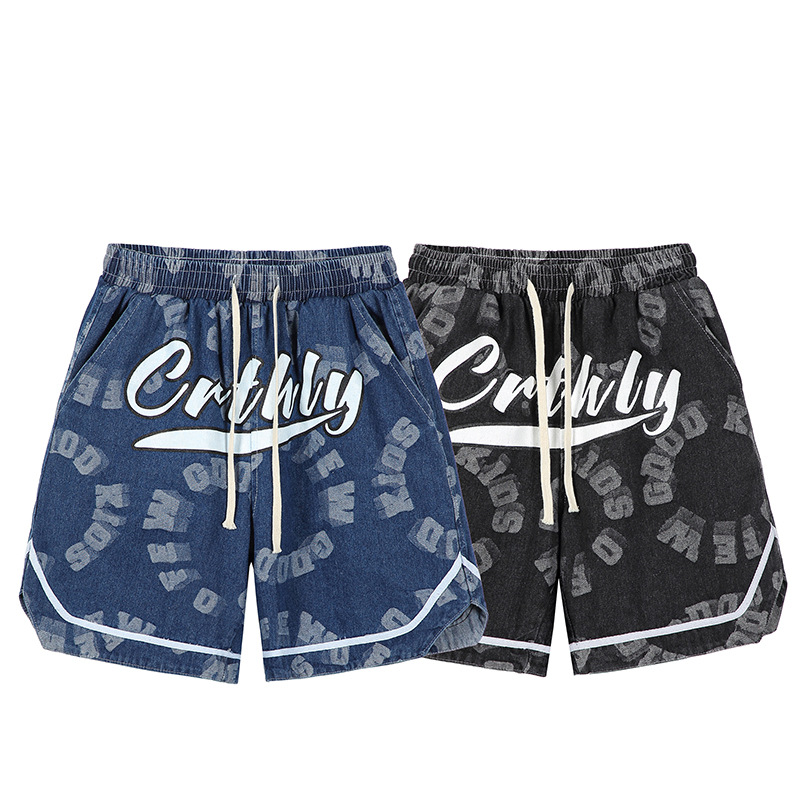 薄い香港スタイルのタイル張りの夏のリッピングレトロジーンズアメリカン大きいサイズメンズクォーターパンツショートパンツ