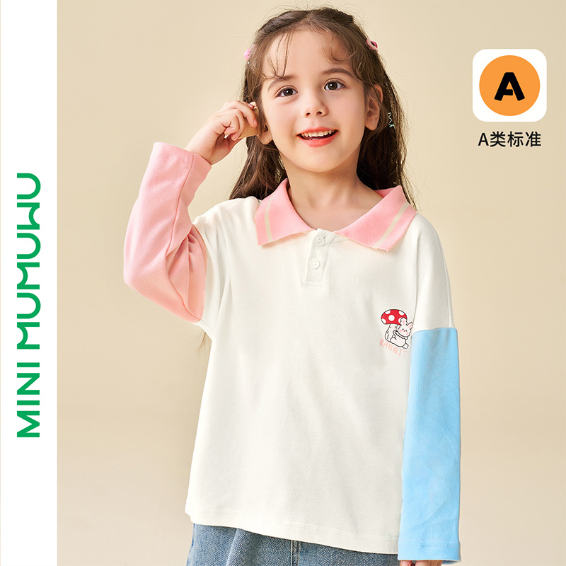 2024木木屋子供poloシャツの色合わせは男女の子供が長袖T韓国版の赤ちゃんの秋の上着をめくっています。