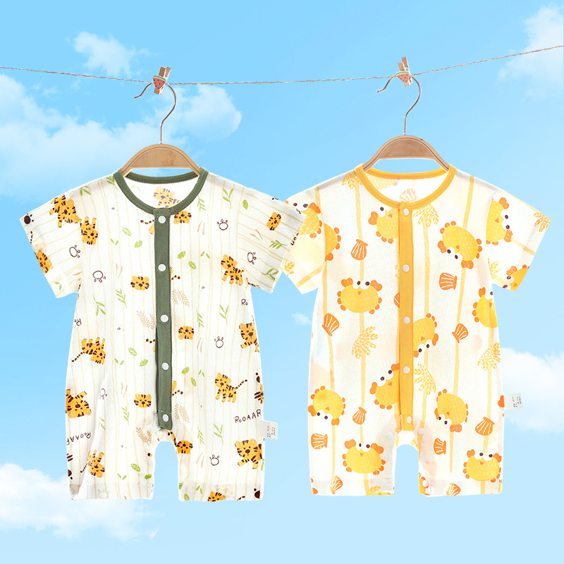 小班郎乳幼児連体服夏純綿新生児対開エアコン服男女赤ちゃん半袖ルームウェア