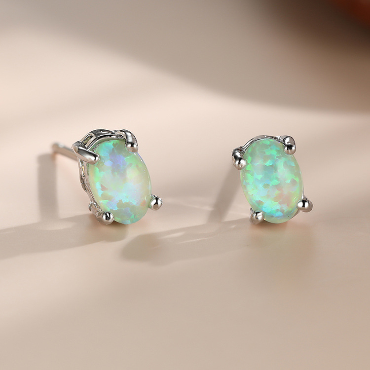 国境を越えたシャインレッドシャンパン楕円水色イヤリング女性のシンプルな個性気質高級感ピアス