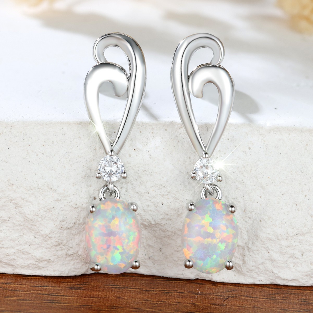 AmazonクロスボーダーホワイトK卵型ホワイトオパールウェーブ中空イヤリングレディースハイエンドシンプルで多用途なイヤリング