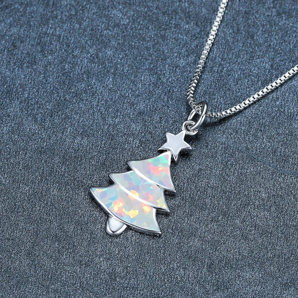 クロスボーダーカラフルなオパールクリスマスツリーネックレスレディースファッションアクセサリー優しく多用途な鎖骨チェーンネックレス