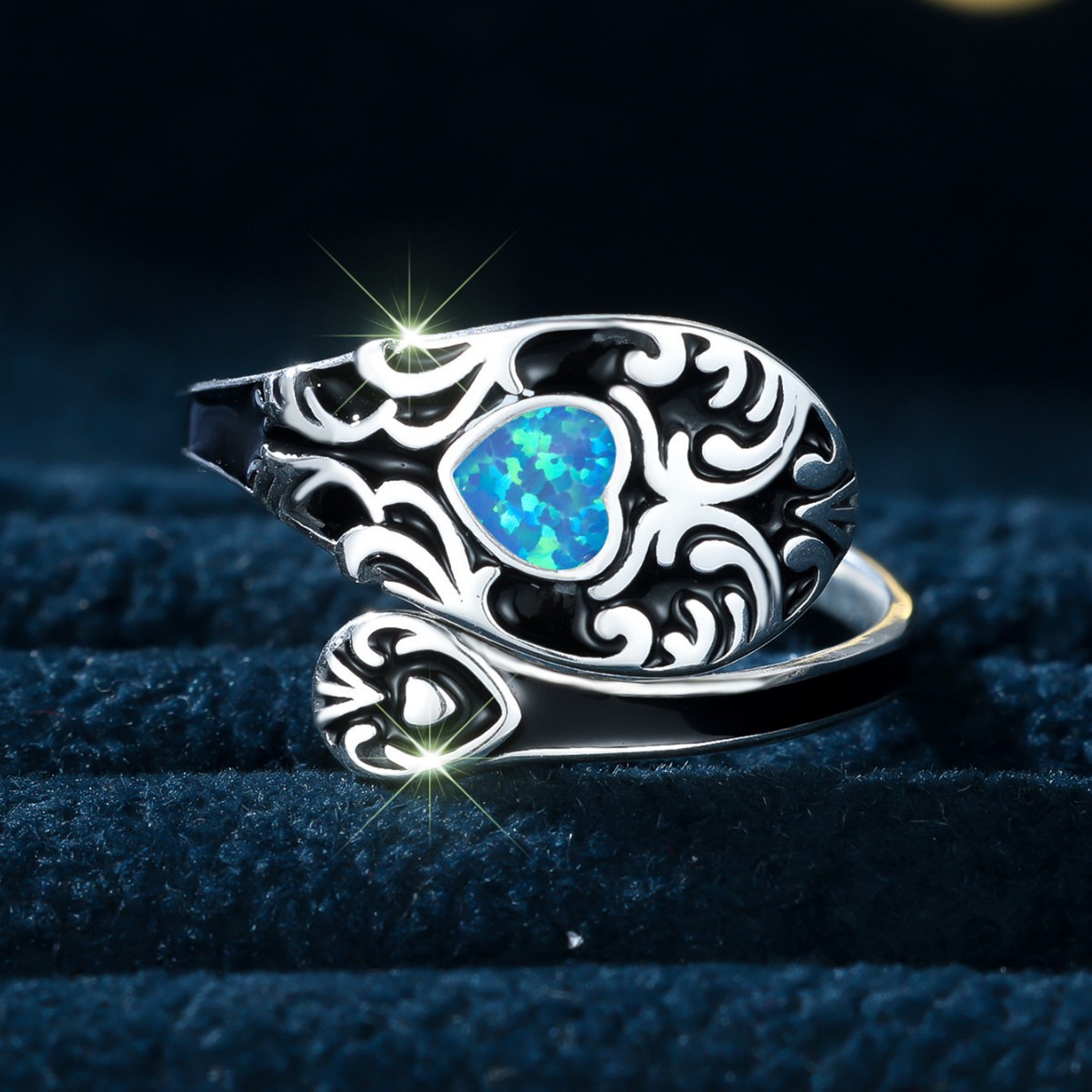 ヨーロッパとアメリカのボヘミアンスタイルスターリングシルバーS925ラブストーンレトロパターンリングパーソナライズされたシンプルな開口部調節可能なリング