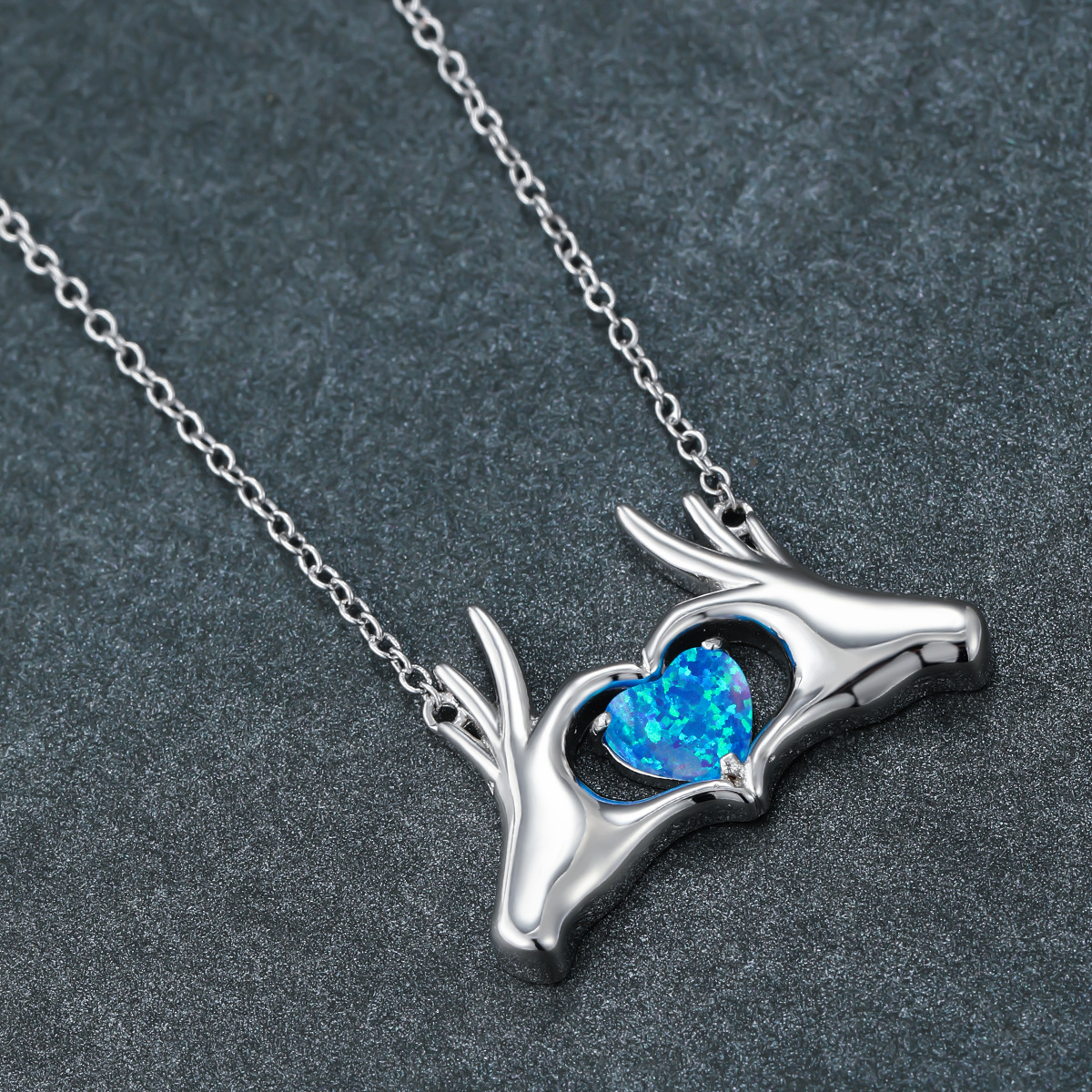 Xin Orange Blue Opal 両手ハートネックレス シンプル ニッチ 鎖骨チェーン 女性用 ギフトネックレス ガールフレンドや親友へ