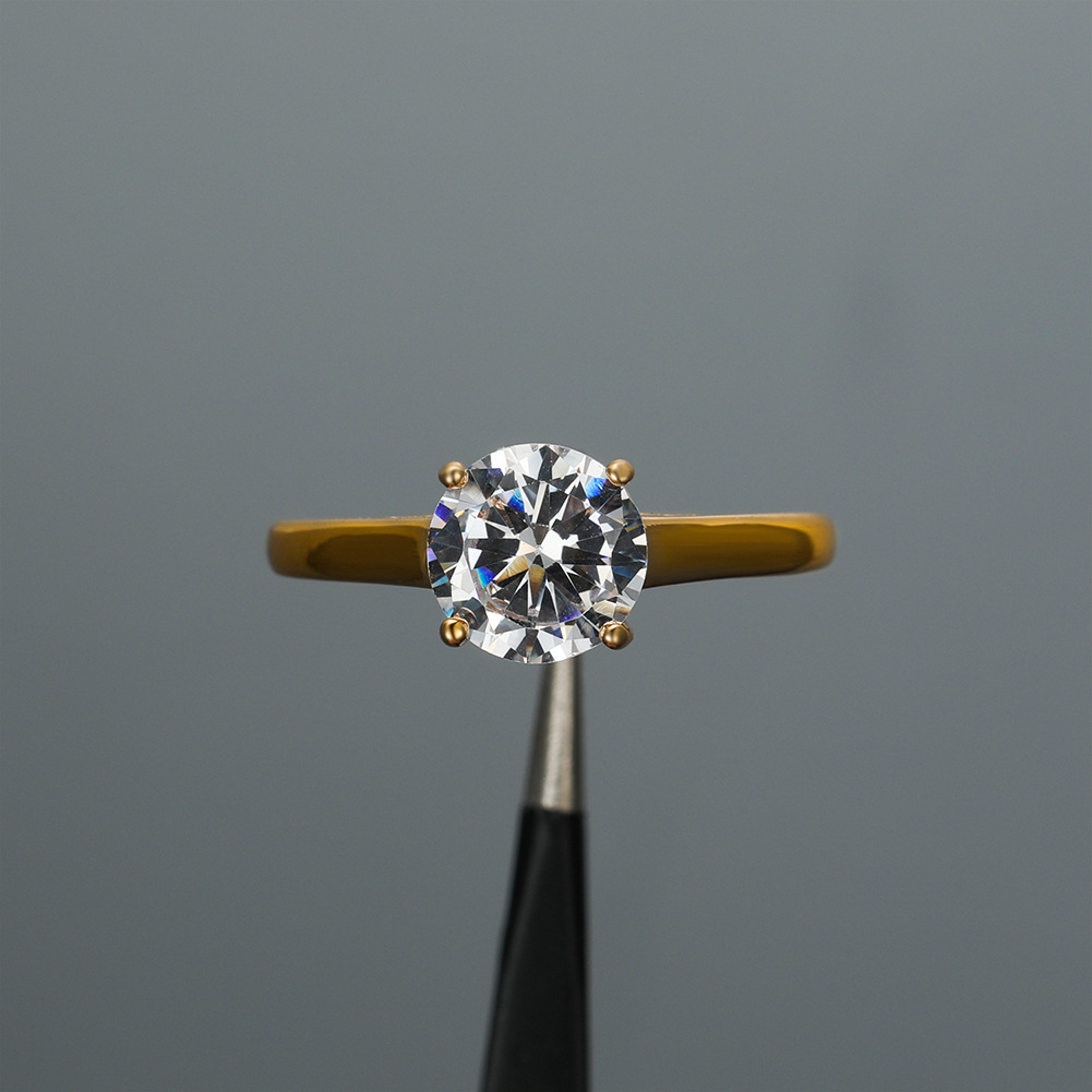 人気沸騰中の越境ジュエリー、Kゴールド四爪8mmホワイトラウンドダイヤモンドリング、キュートでシンプルな指輪