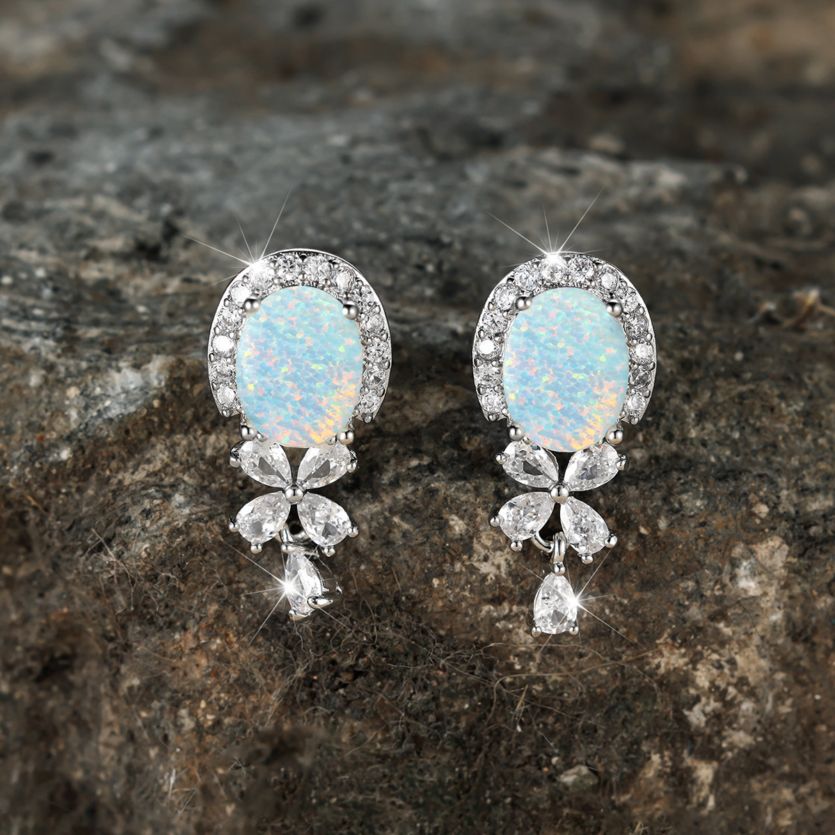アマゾンは韓国版の卵の形の白いオーストラリアの宝の辺の水滴の花のピアスの大気のファッションネットの赤いダイヤモンドの耳飾りを売ります。