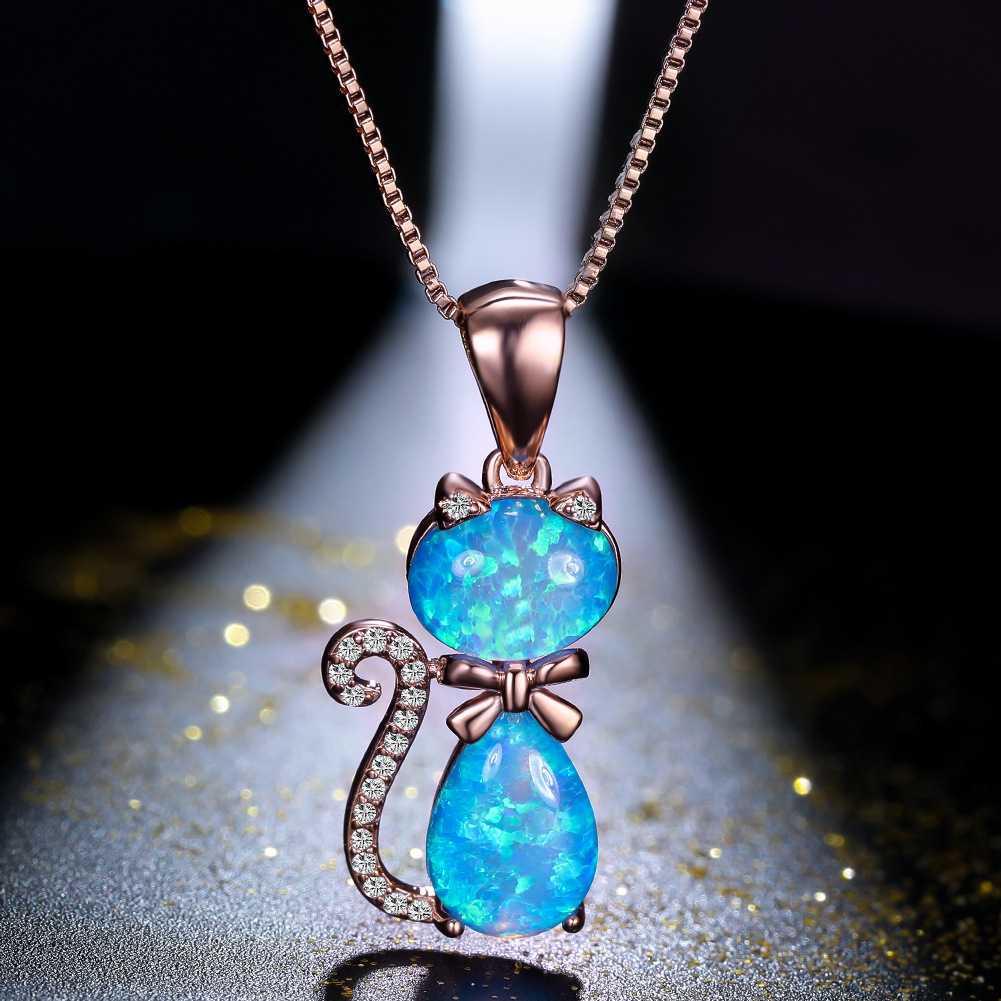 欣橙オリジナルアクセサリークロスボーダー白ドリルオーストラリア宝猫蝶結びネックレスロコ風女性鎖骨鎖