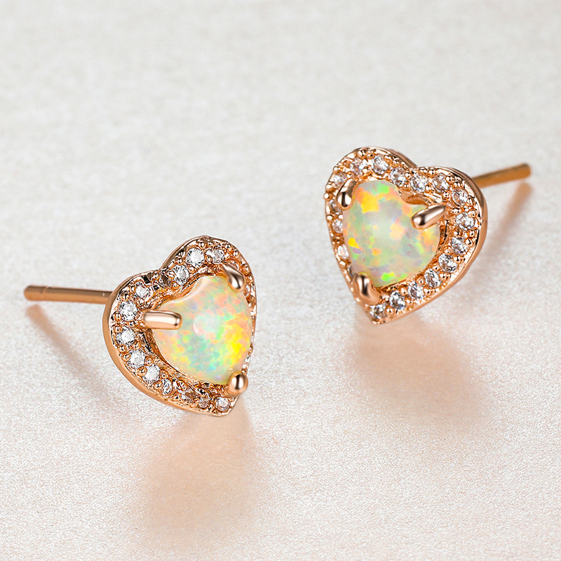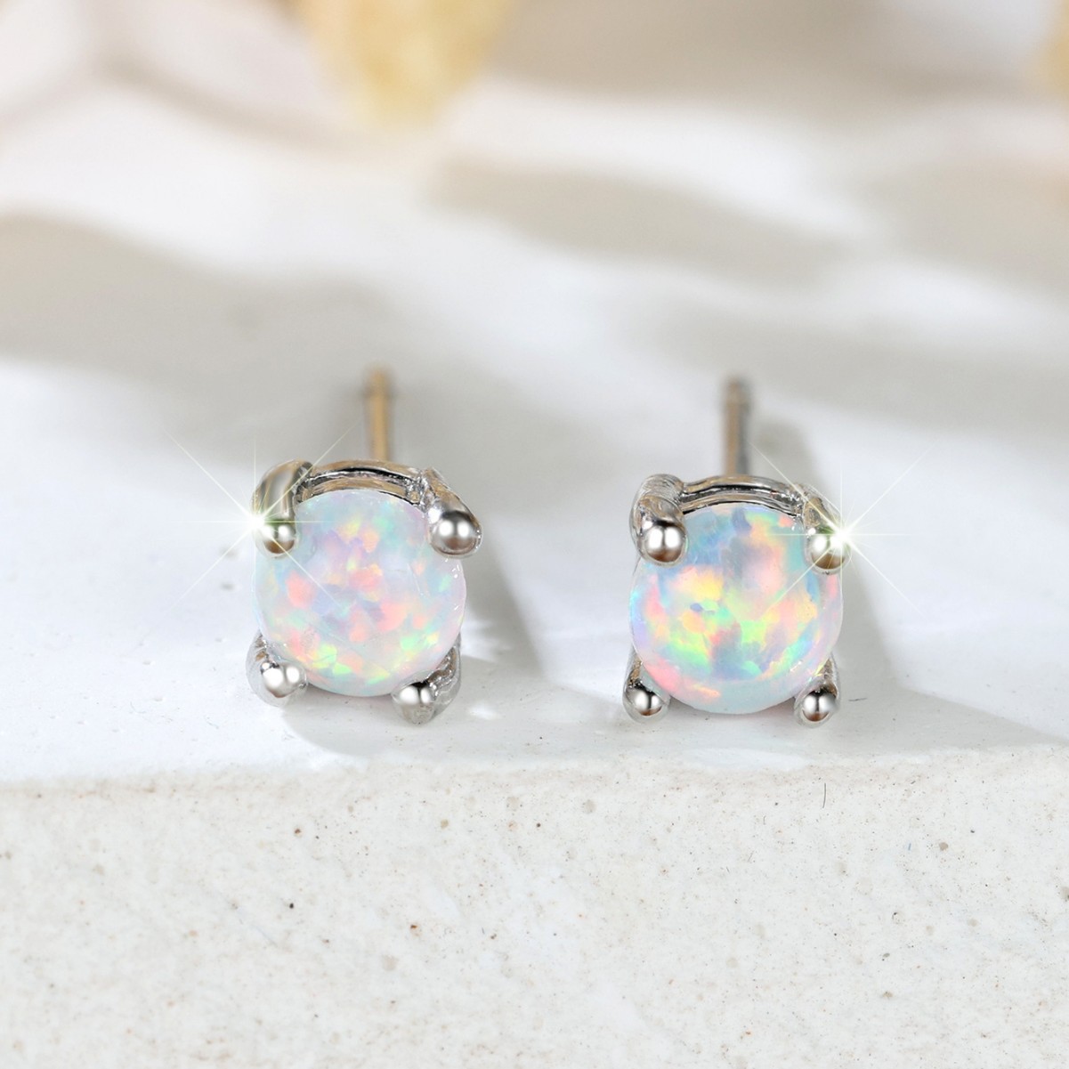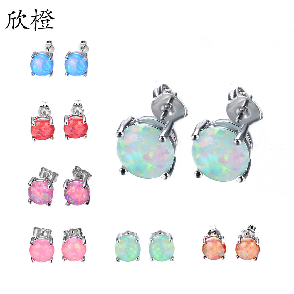 クロスボーダーホットセールクラシックラウンド4本爪オパールイヤリングヨーロッパとアメリカのファッションインスタイルの小さくて甘い耳骨イヤリング