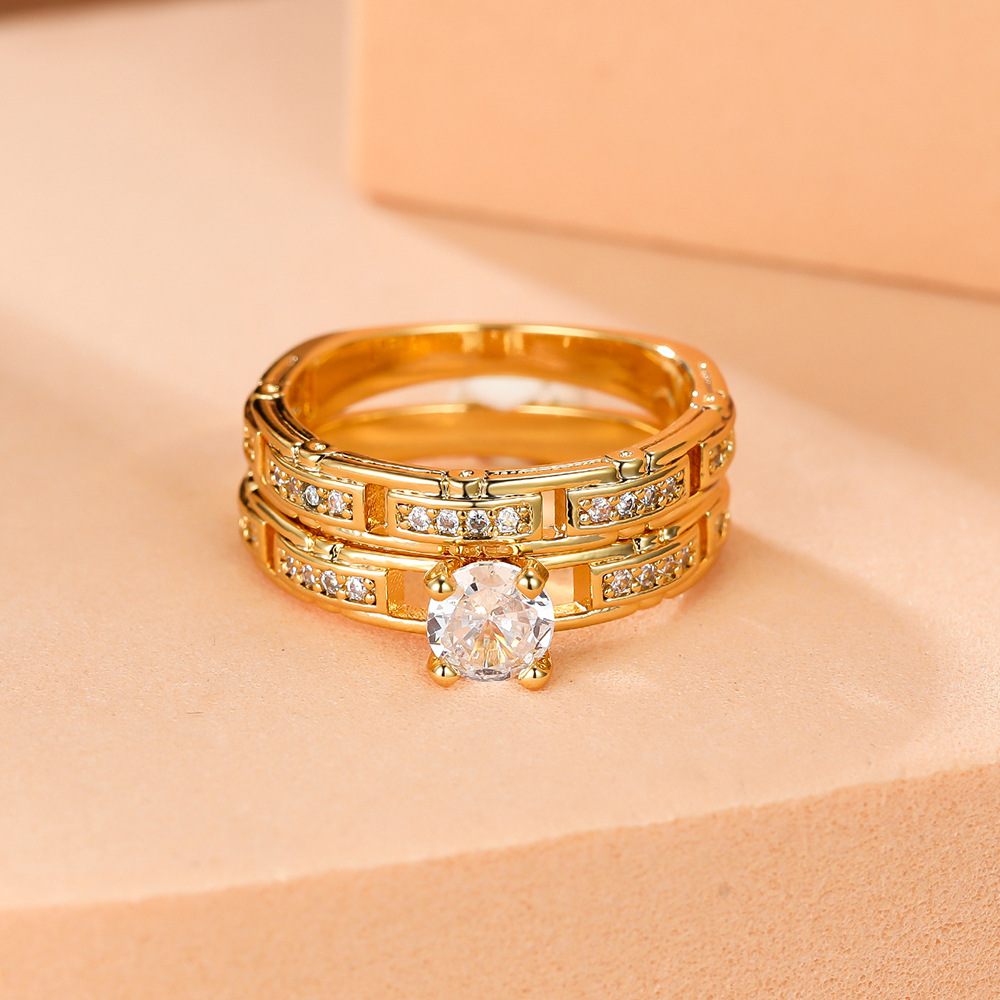 ウィッシュホットセールクロスボーダージュエリーゴールデン 4 爪ラウンドダイヤモンド時計チェーンセットリングヨーロッパとアメリカの男性と女性のセットリング