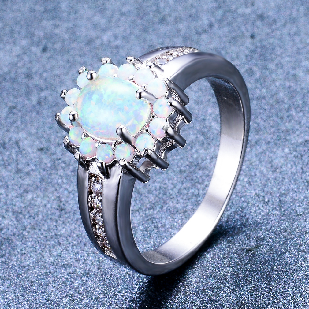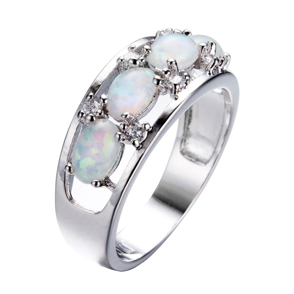 越境ファッション通勤用プラチナ4石オーバルオパールリング、一件代発送