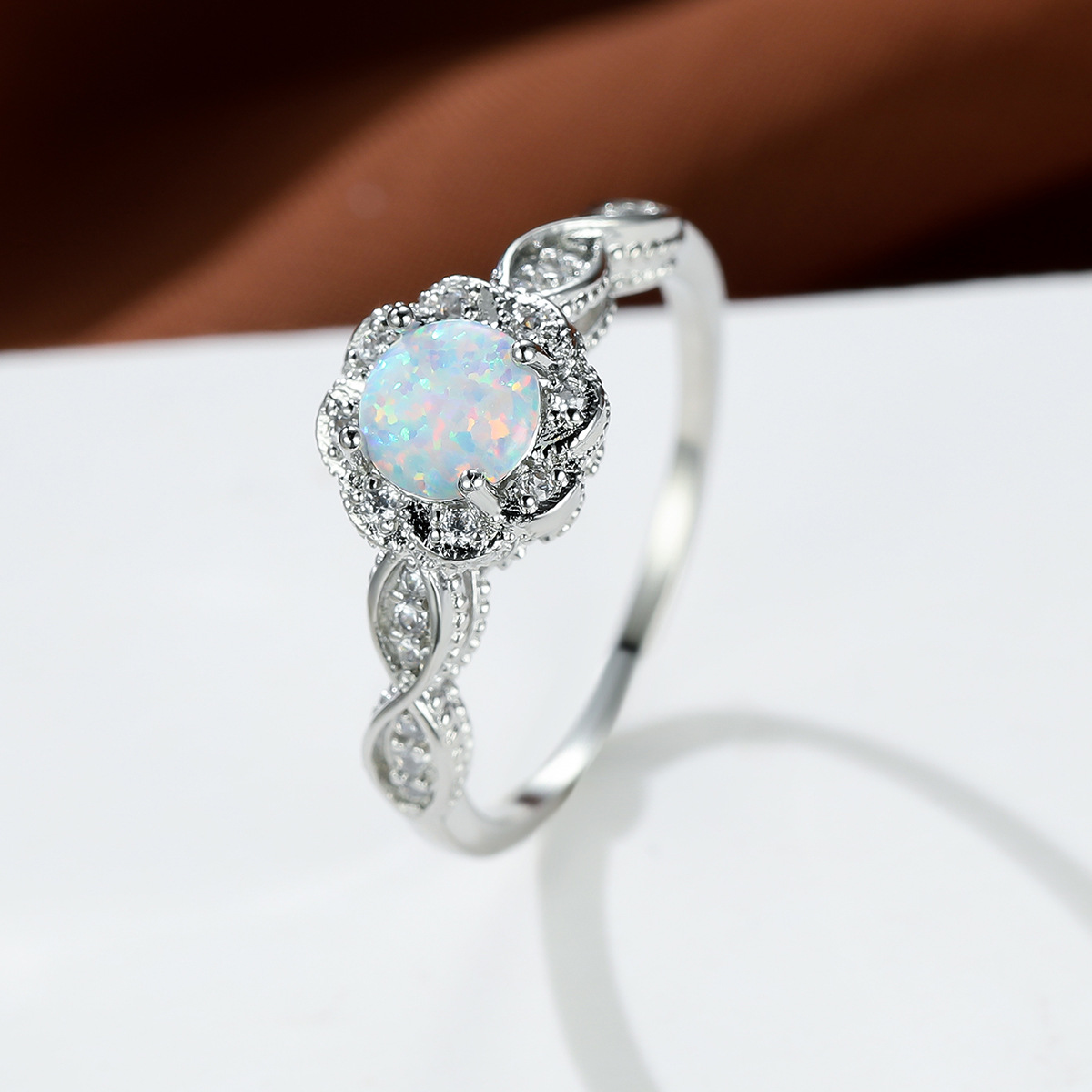 クロスボーダーwish速売通円形四爪オーストラリア宝指輪花レース女性百合指輪卸売り