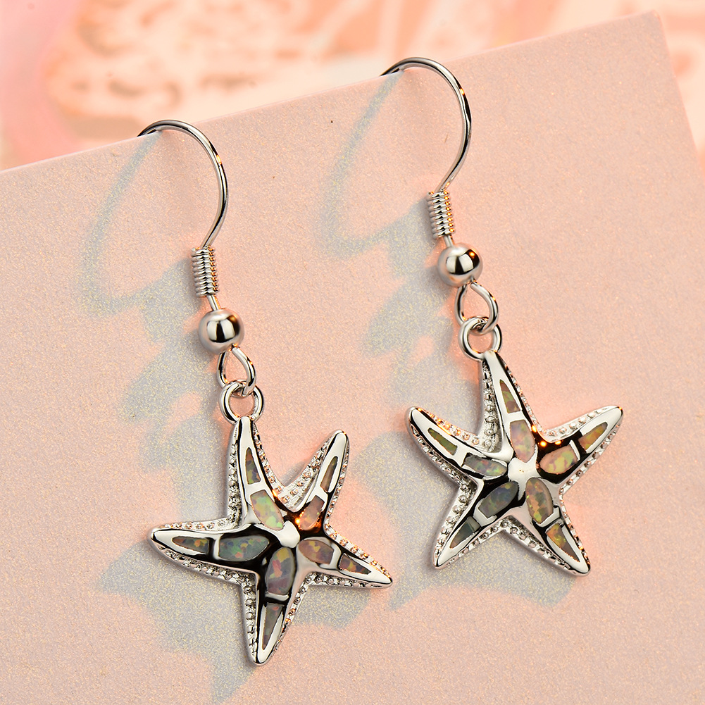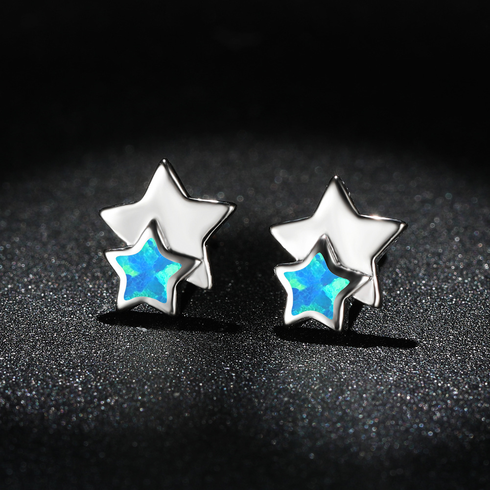クロスボーダーwish欧米新型五角星澳宝ピアス女性純森系シンプルな個性百合高級感ピアス