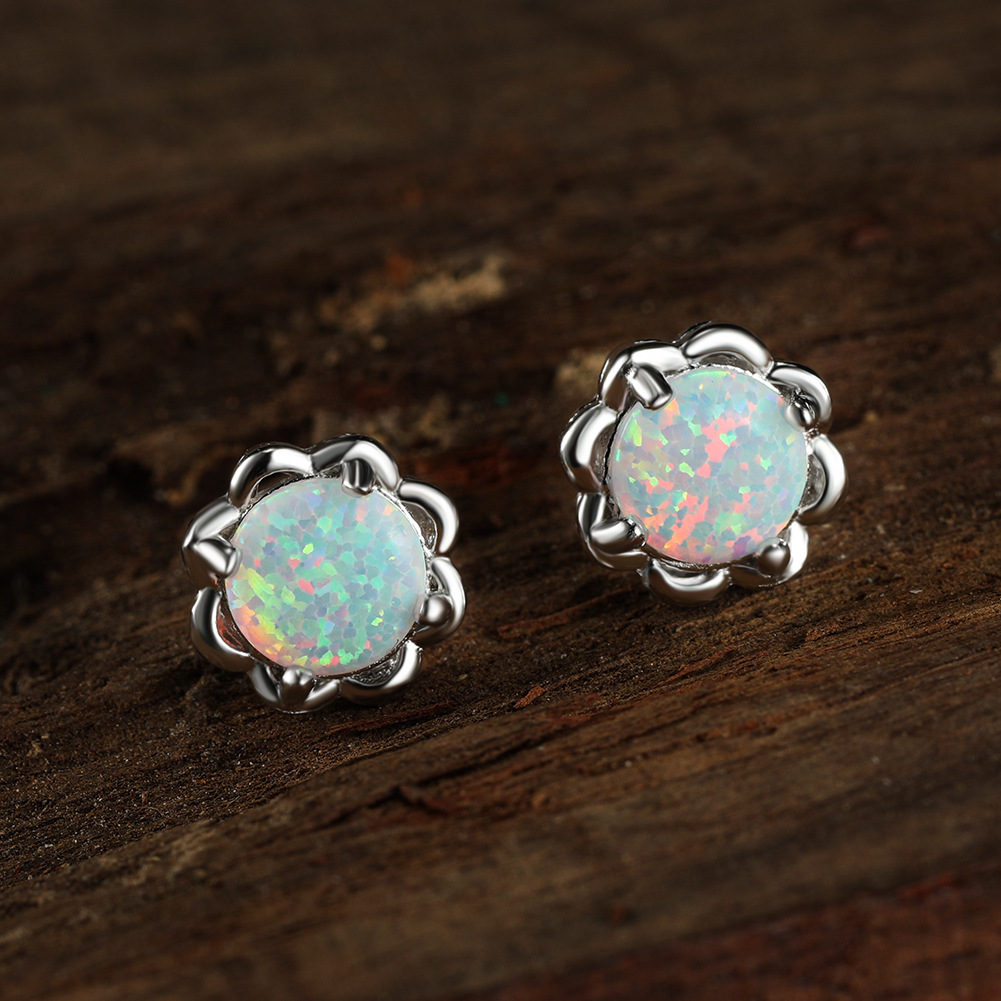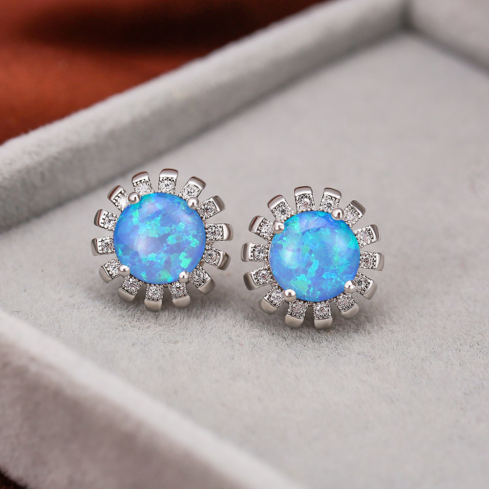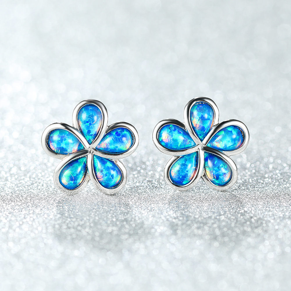 クロスボーダーwishファッションプラチナ青緑粉円澳宝花形ピアス女性気質百合耳飾り
