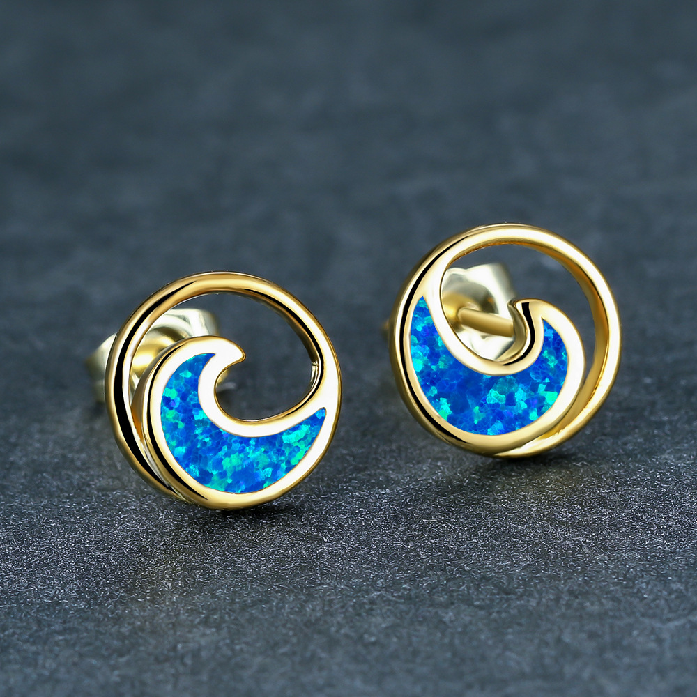 クロスボーダーwish新型ファッション瑞麗風金色プラチナ青白オーストラリア宝波円女性式百合ピアス