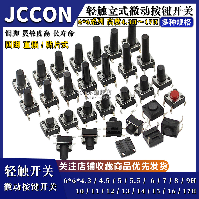 1688タッチスイッチ6*6*5/4.3/8/9.5/10mm縦型4脚インラインパッチボタン微動ボタンスイッチ