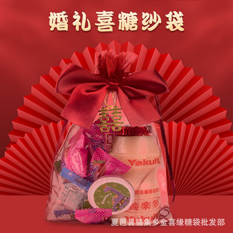 新商品創意喜糖紗袋卸売り糖果袋網袋百年好合永結同心メーカー直売
