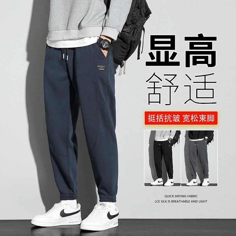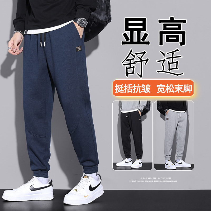 スポーツパンツ男性2023新型韓国版トレンドゆるい足首カジュアルパンツ春秋冬のベルベットパンツ男服