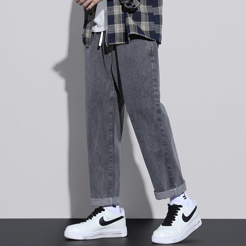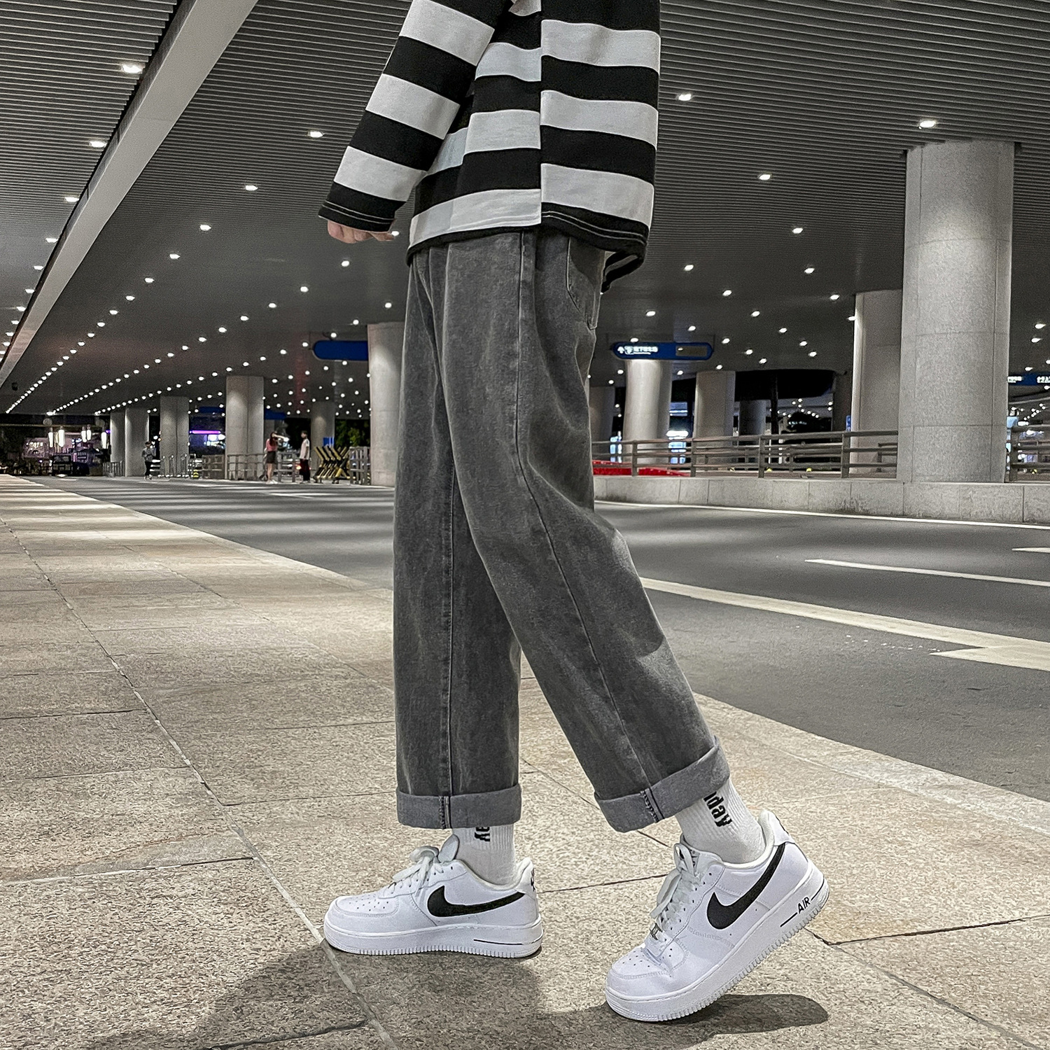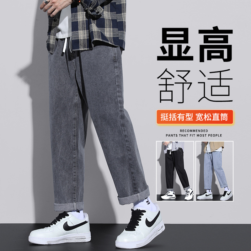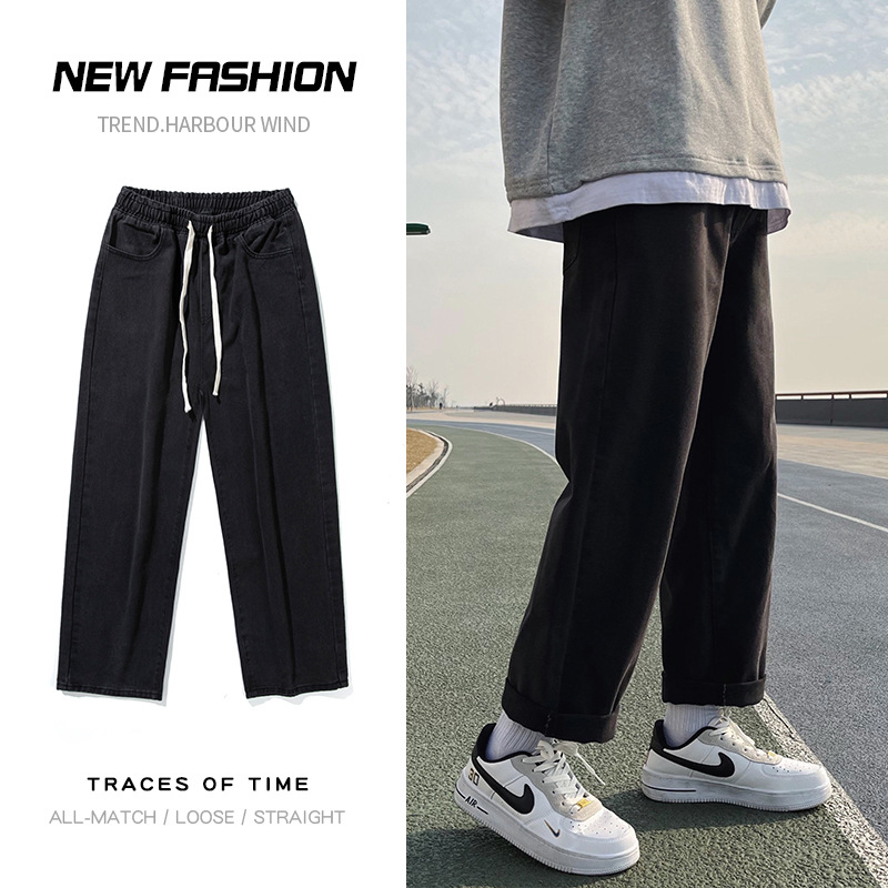 春秋ジーンズ男性insトレンド青少年ゆるいストレートカジュアルパンツ学生高街広脚長ズボン