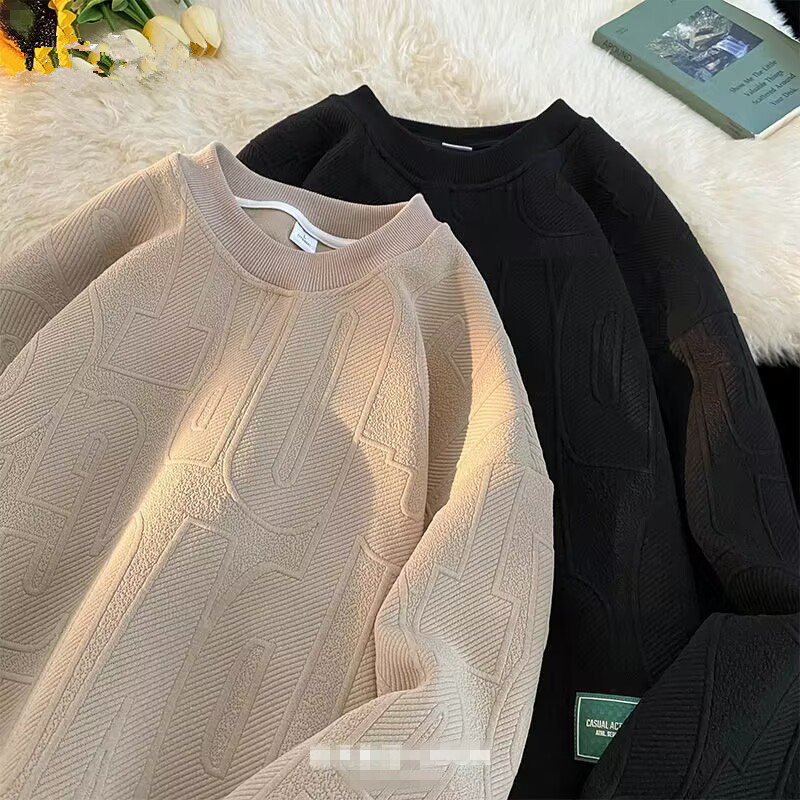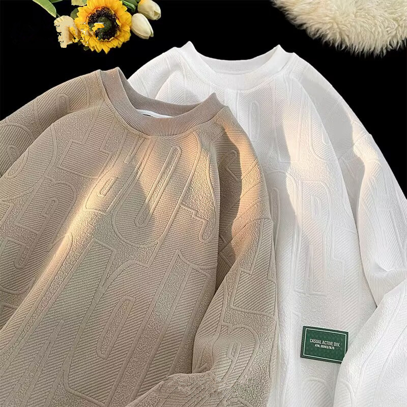 ガーディアン男春秋ゆるいレジャースポーツ2024新ジャカード重ポンド丸襟カバー長袖tシャツ高街