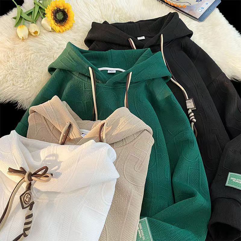 2024新型のパーカーの男性用のゆったりとした頭の上の服の重いポンドの春と秋の丸首のコートの香港風のジャカードの長袖