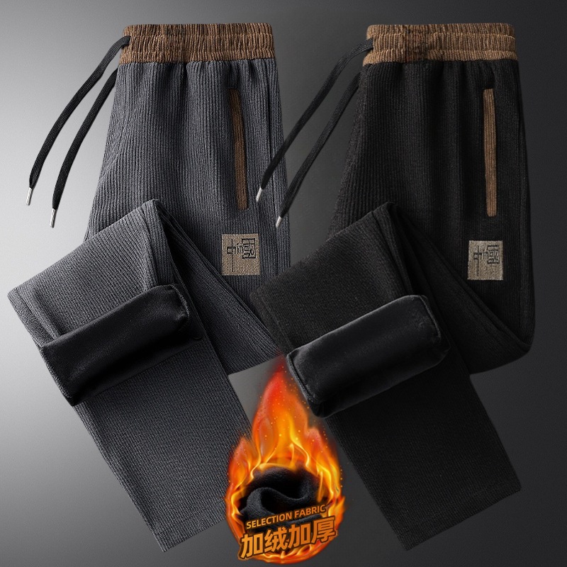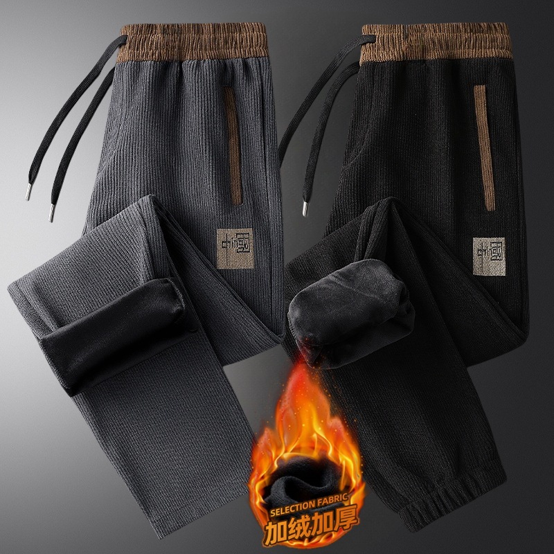 メーカー卸売りの外国貿易輸出のベルベットのズボンの男性はゆったりとしていて、冬の保温の外に厚いカジュアルなスーツのズボンを着ています。