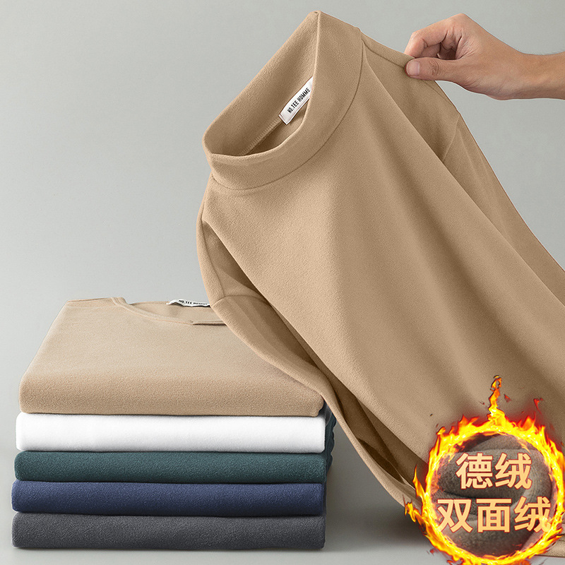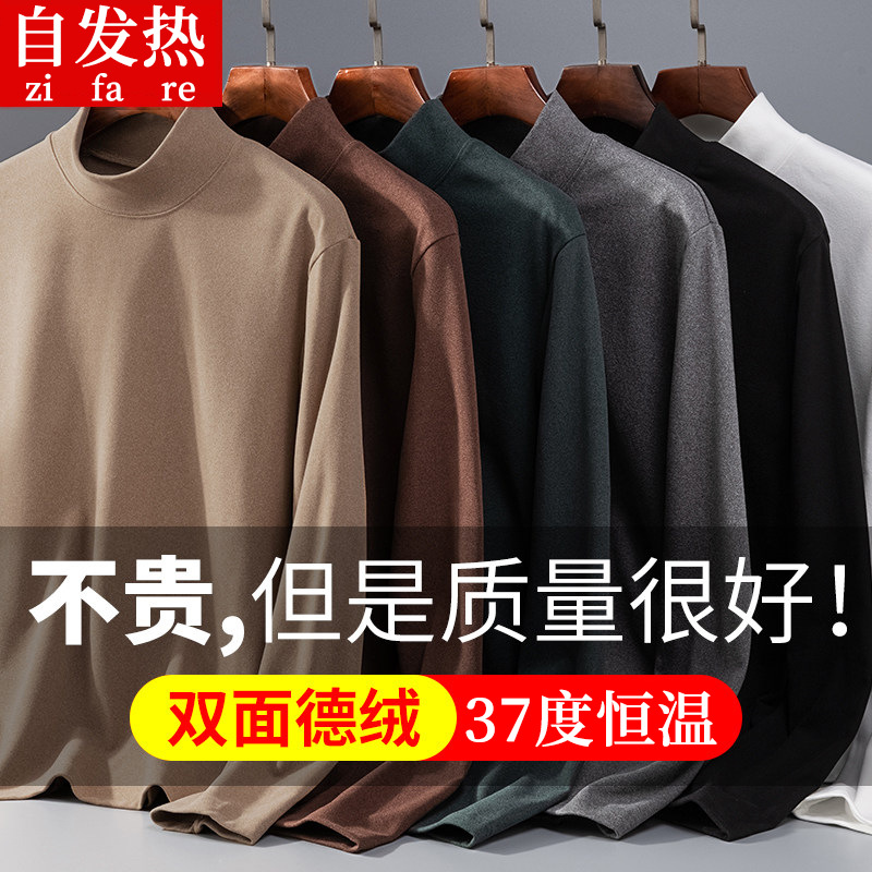 半高襟長袖tシャツ男秋冬発熱恒温保温徳絨上服カジュアル百合韓版ファッション