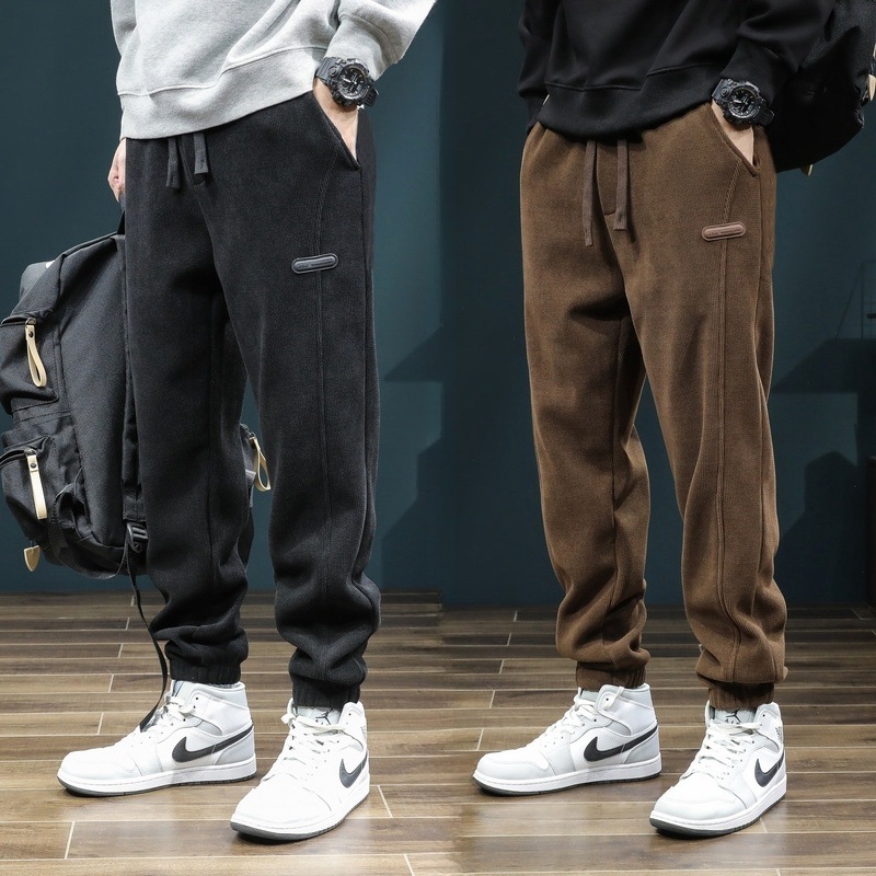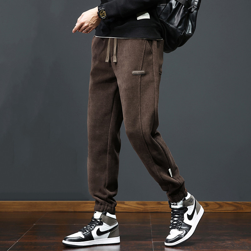 男のズボンを代行します。秋冬のフリースはゆったりしていて、足を厚くして保温します。