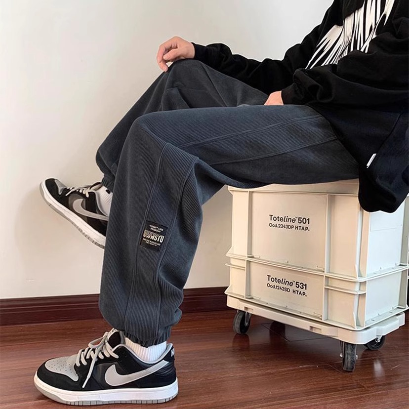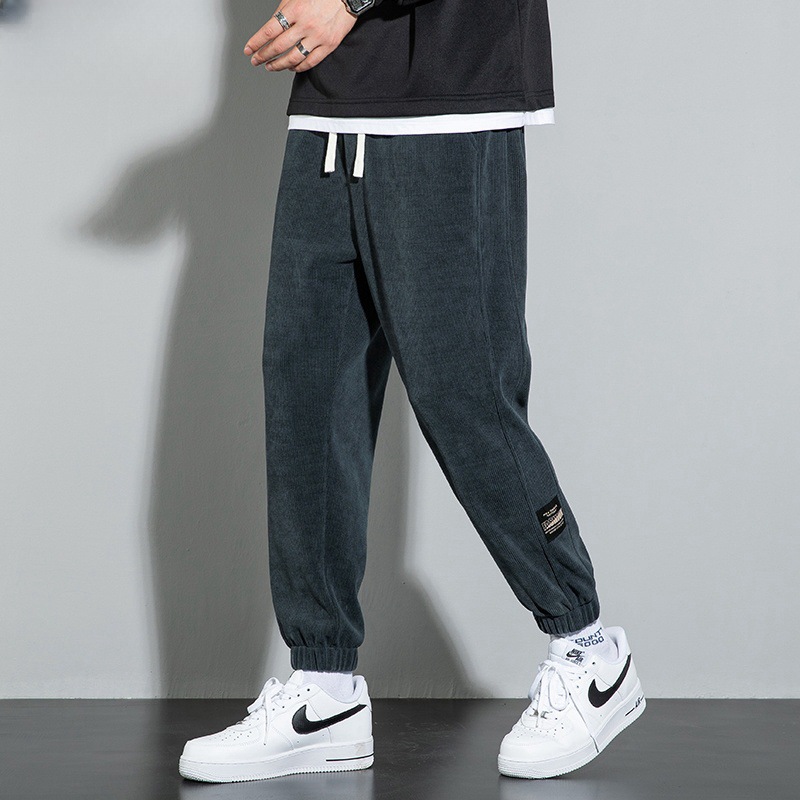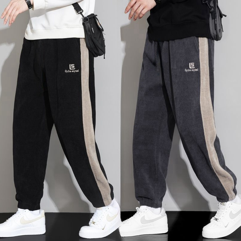 コーデュロイパンツ男性秋冬insトレンドゆるい束足ハーレムパンツ青少年レジャースポーツパンツ