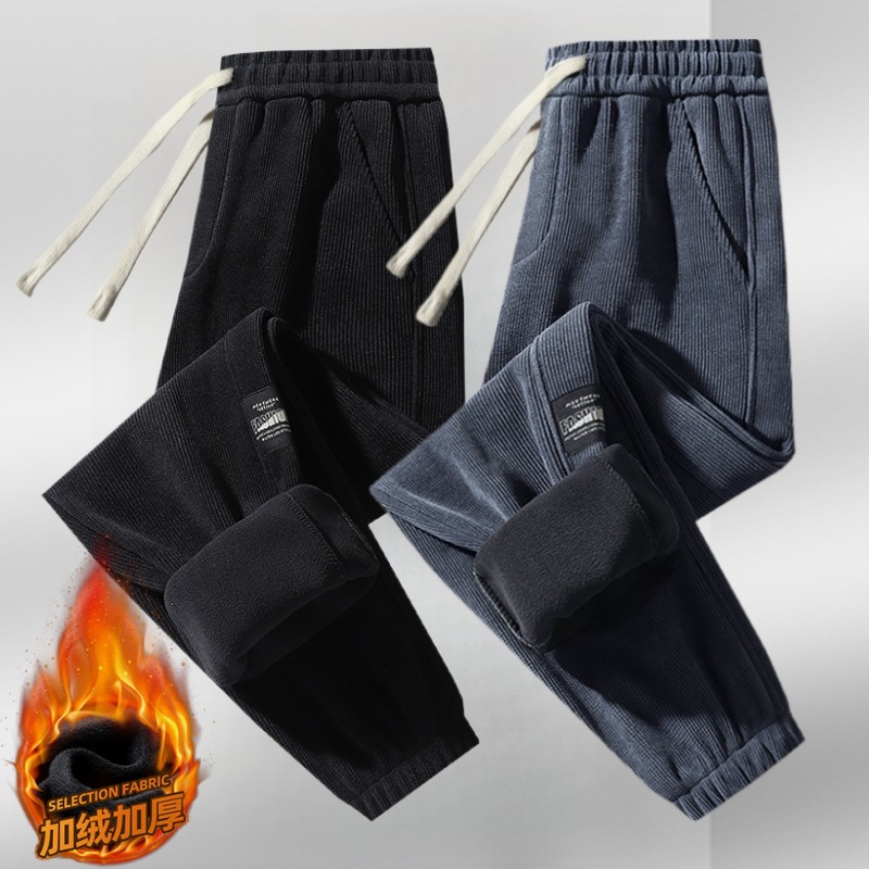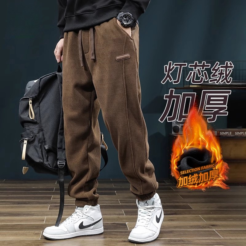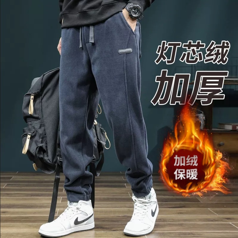 男性カジュアルパンツ秋冬保温外着ハロン束足スポーツパンツゆるい大サイズのポイントコーデュロイパンツ