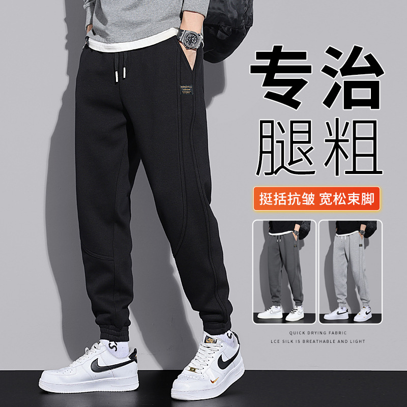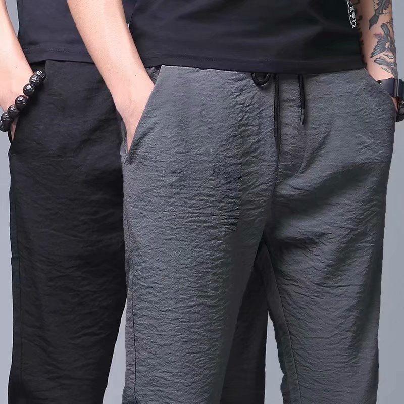 メンズ夏のトレンディなブランドの速乾性の薄いスポーツズボン、トレンディで多用途のアイスシルクカジュアルルーズミッドパンツ