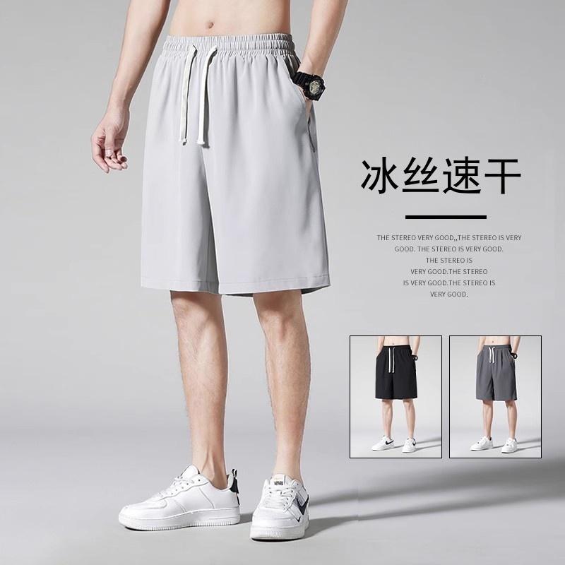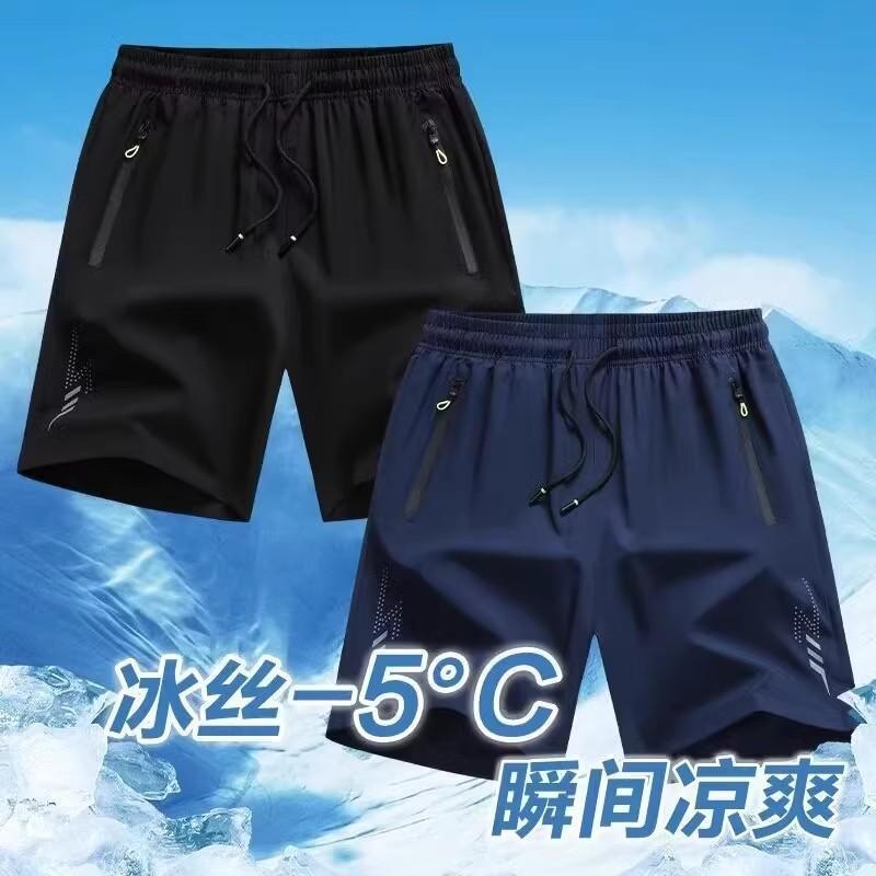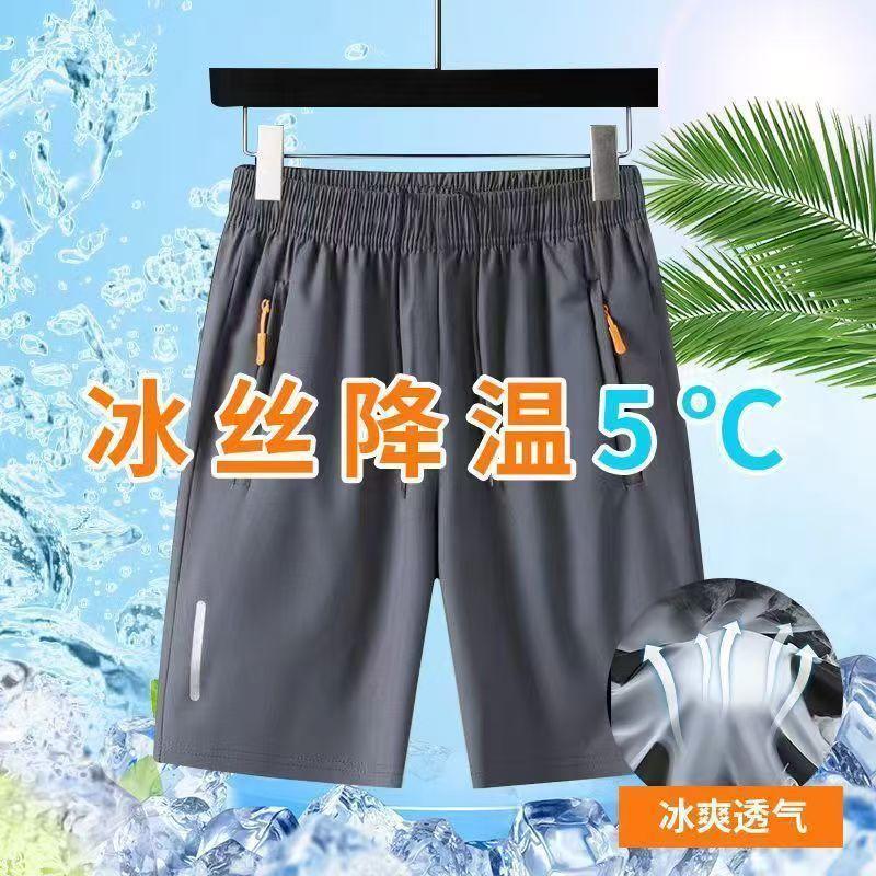 アイスシルクビーチカジュアルショーツメンズ夏2025新しい速乾性スポーツズボン5点ルーズ大きいサイズミディアムパンツ