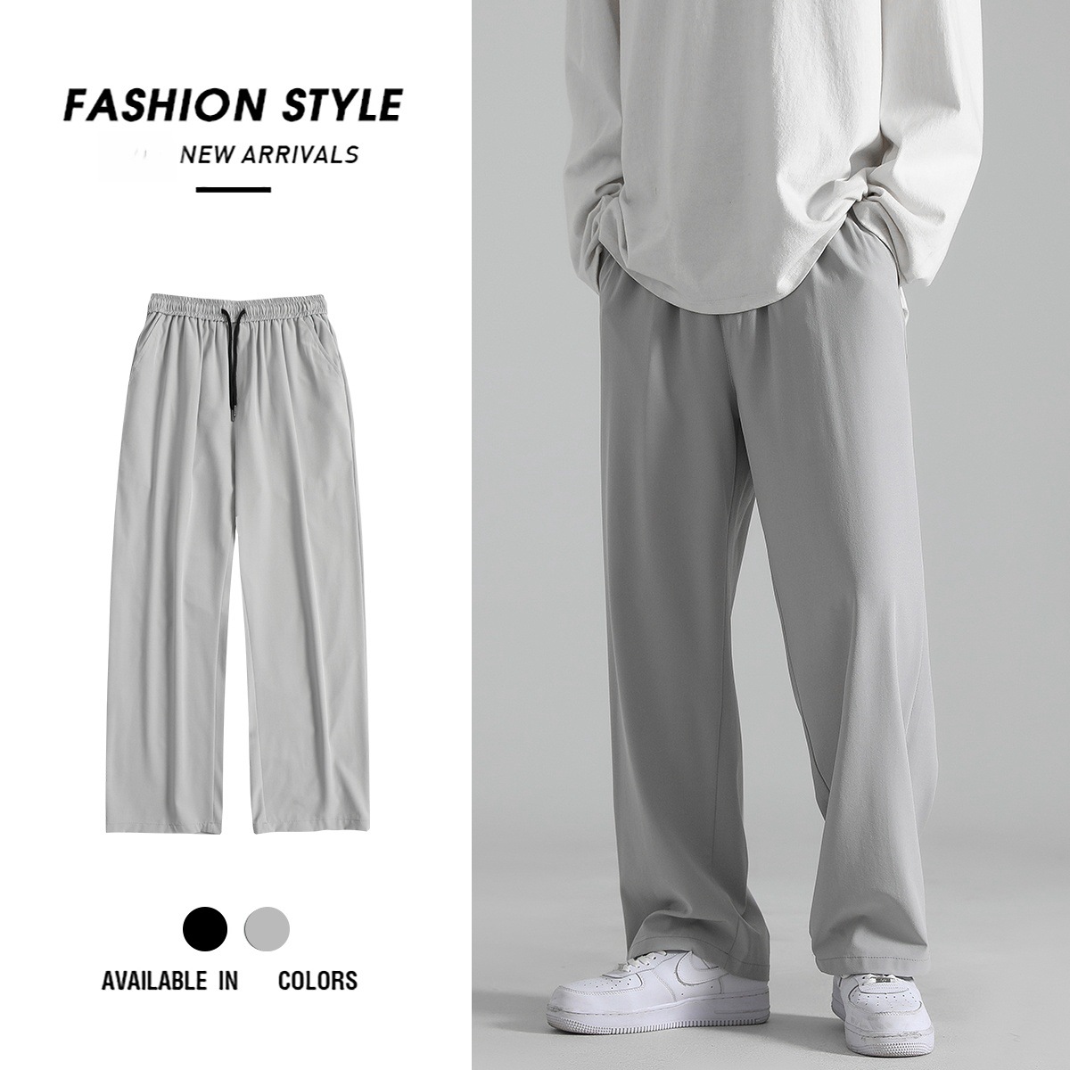 氷の糸の広い足のズボンの男性の夏の薄い金のゆったりしているまっすぐな筒の潮流の学生は足を引きずって夏のズボンをカジュアルにします。