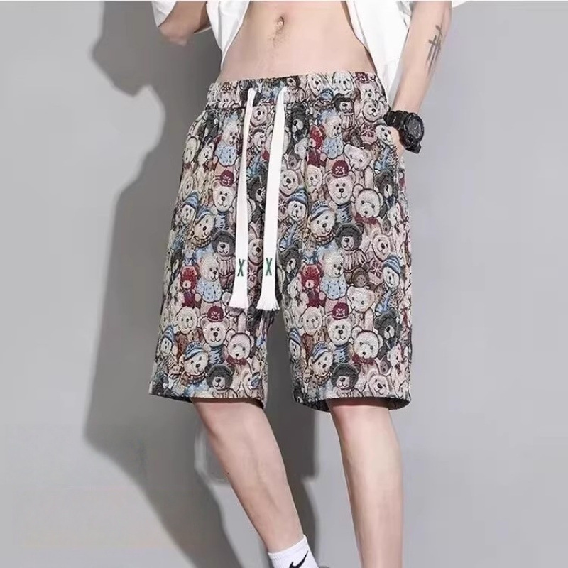 トレンディなブランド通気性スポーツショーツメンズ 2025 夏新作ルーズ大きいサイズ 5 点ミッドパンツアイスシルクカジュアルパンツ