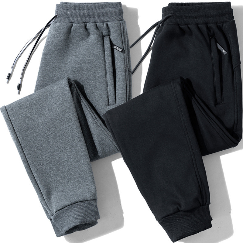 カジュアルパンツの男性モデル春秋冬のベルベットの外にファッションを着て、学生の青少年のスポーツの足の長いズボンを履いています