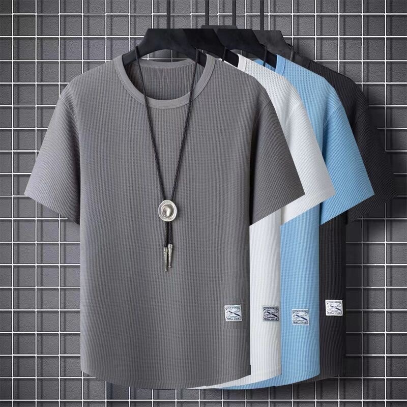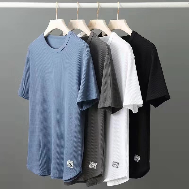 ワッフル半袖tシャツ男性ゆるい丸首半袖潮牌上服底シャツ夏服薄着tシャツ