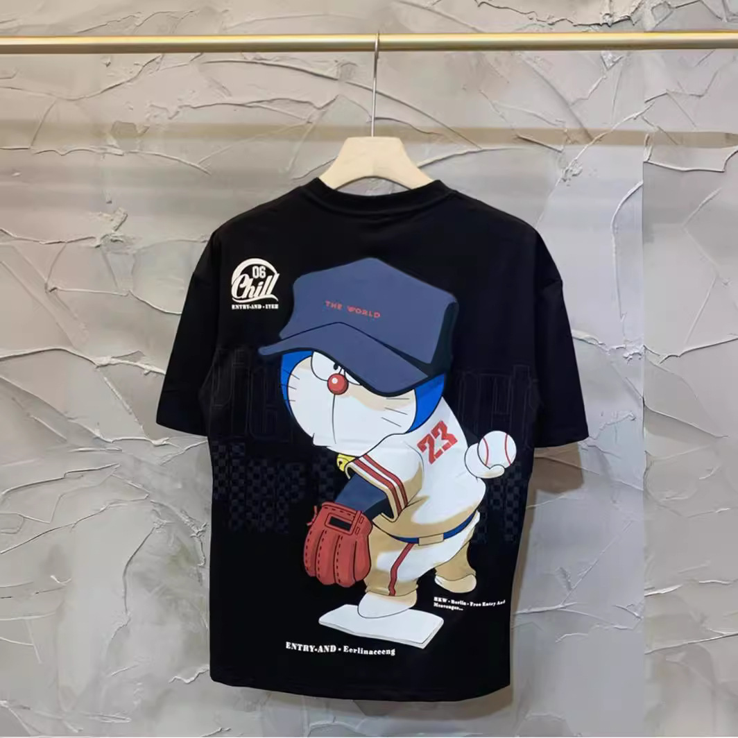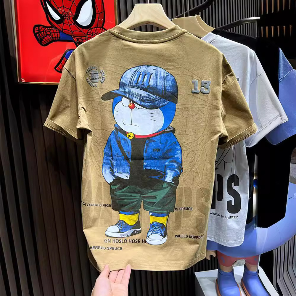 半袖のtシャツの男性のタイプの夏の潮のブランドの漫画のプリントの丸首の半袖のtシャツの青少年のゆったりしているカジュアルな上の服