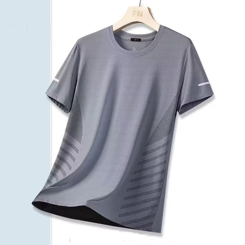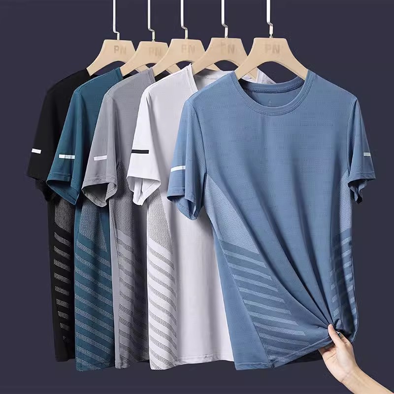 氷糸半袖男性夏の薄いスポーツで服のボディシャツの弾力性メッシュ通気性半袖速乾性tシャツ