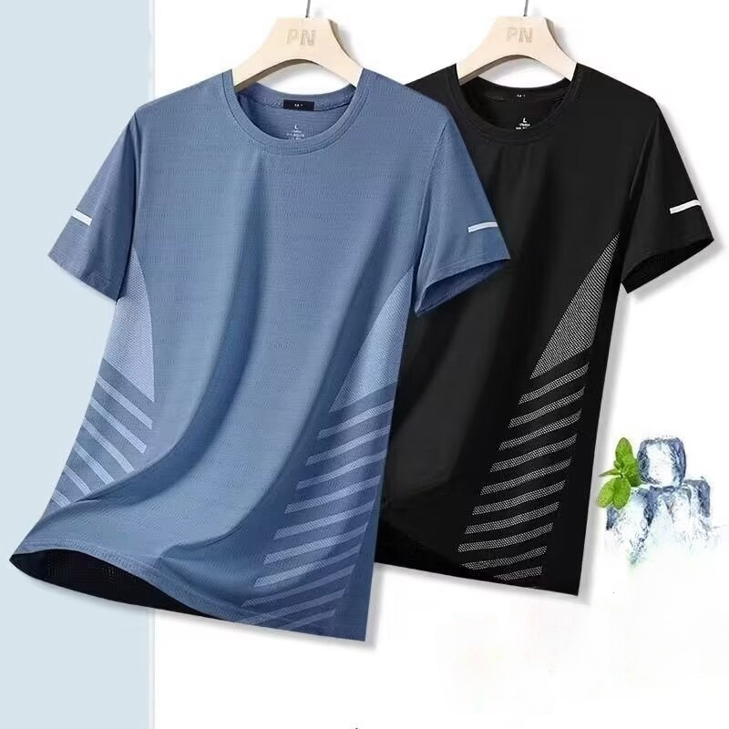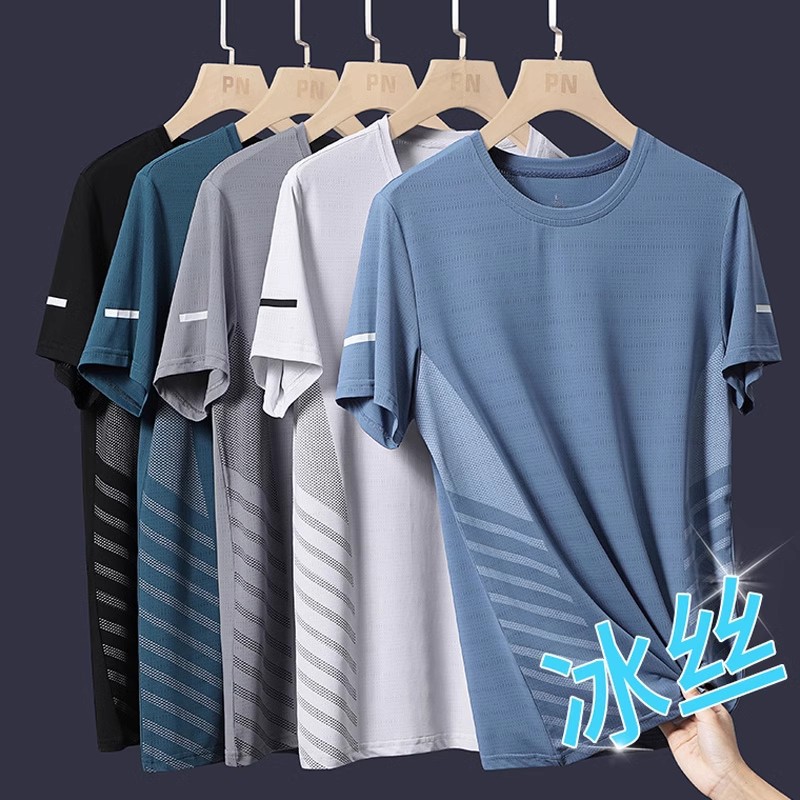 アイスシルク速乾半袖tシャツ男性韓国版ファッション夏のスリムサイズ半袖通気運動男性tシャツ