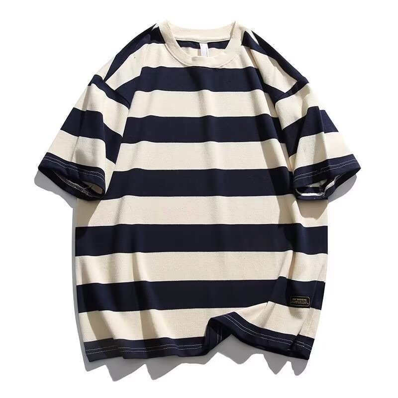 ストライプ半袖tシャツメンズ夏のファッションはゆったりしています。