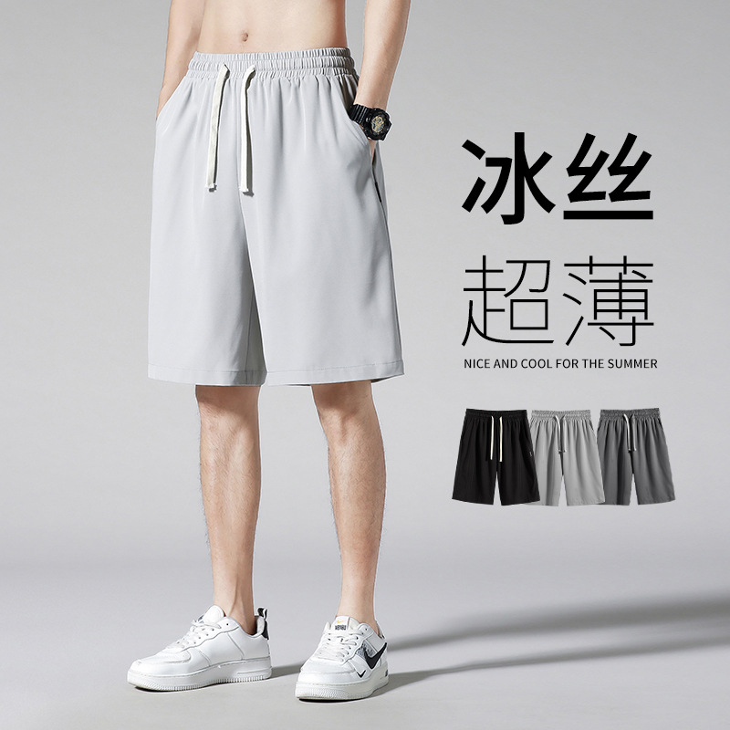 スポーツパンツ男性夏insトレンド速乾薄5分ゆるいパンツ男性カジュアル氷糸ズボン