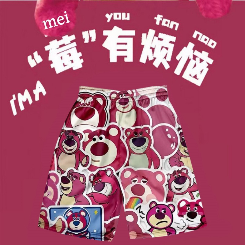 夏のゆるいビーチパンツ男性用カジュアルスポーツパンツ五分寝ズボン女性いちご熊派大星ズボン