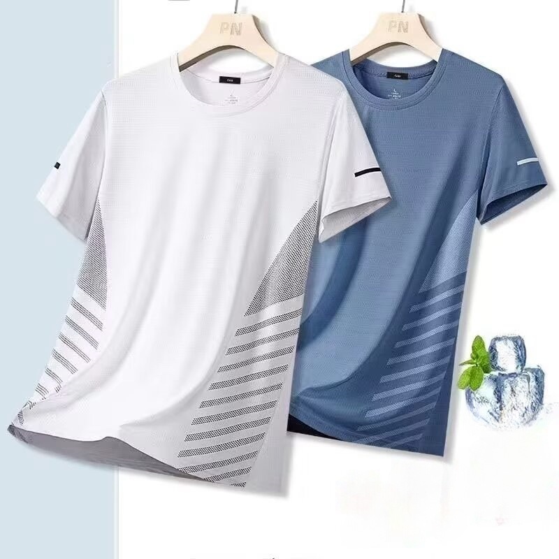 氷糸半袖tシャツ男性速乾通気tシャツカジュアルスポーツウェア男性丸首ゆるい半袖シャツ