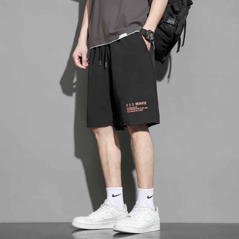 カジュアルスポーツパンツ夏insトレンド青少年アイス薄手バスケットボールゆるい5点中ズボン男子