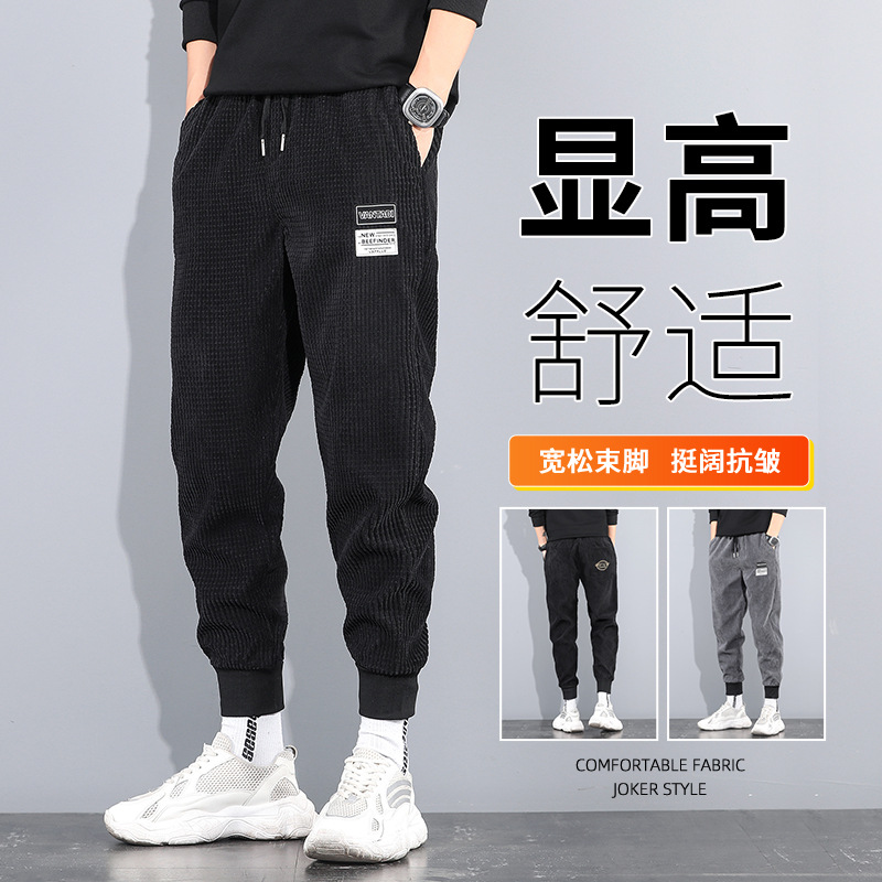 カジュアルパンツ男性潮牌2024新型春秋冬コーデュロイ衛ズボンレトロゆるいレギンス
