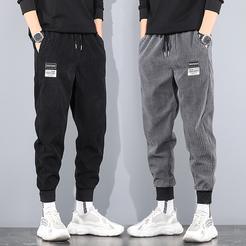 コーデュロイの男性ズボンinsのファッション春秋モデルは、冬の保温とベルベットを着てカジュアルなスポーツパンツを厚くする
