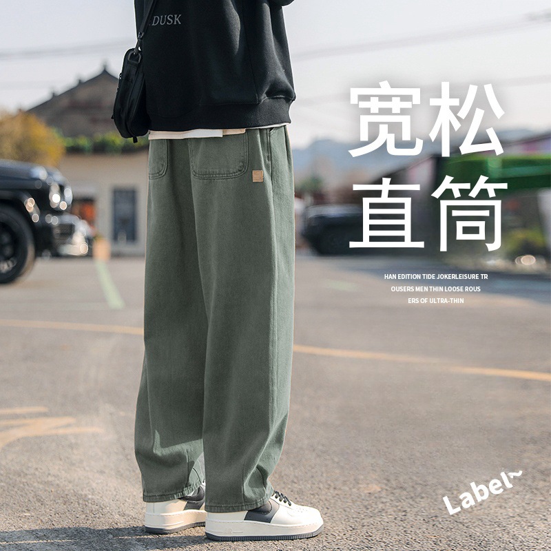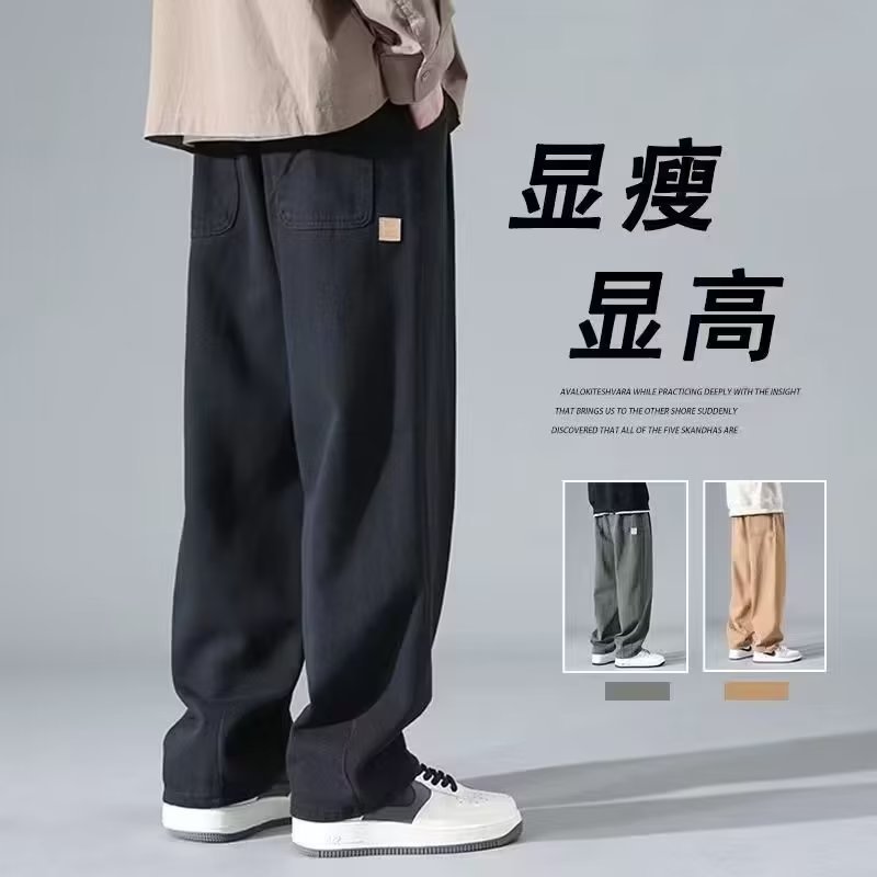 工装ズボン男春秋2024新型カジュアル直筒長ズボンins潮牌高街ゆるい広脚百合